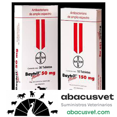 Baytril Flavour 50 mg caja de 30 tabletas marca Elanco para: La administración de BAYTRIL FLAVOUR TABLETAS está indicada en los perros y gatos con problemas infecciosos bacterianos de los sistemas digestivo, respiratorio, genitourinario, de la piel, conducto auditivo externo, heridas infectadas y septicemias. ¡Compra en línea – abacusvet.com!
