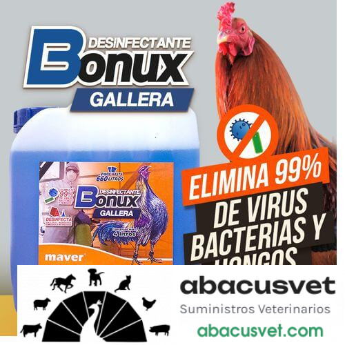 BONUX GALLERA garrafa de 4 lt marca Maver para: Ideal para la desinfección de galleras, criaderos, incubadoras, bebederos, comederos y todo otro elemento que necesites para tu gallera. ¡Compra en línea – abacusvet.com!