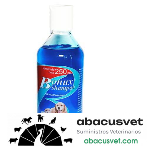 BONUX SHAMPOO es efectivo contra gran número de microorganismos, bacterias, hongos y levaduras que infectan la piel y causan caspa, seborrea y dermatitis. El BONUX SHAMPOO contiene componentes con gran poder para remover las grasas y la suciedad del pelo sin irritar ojos y piel. Se recomienda el empleo en la higiene de las mascotas y como preventivo para evitar caspa, seborrea y dermatitis. Puede utilizarse en animales clínicamente sanos, eliminando bacterias y hongos que afectan el folículo piloso, reduciendo considerablemente la caída del pelo, por su acción residual protege durante días controlando los organismos causantes del mal olor.