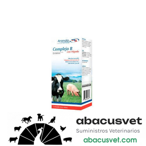 Ingrediente activo: Cada 1 mL contiene:Vitamina B1 (Tiamina)20 mg.Vitamina B 2 (Ribofl avina)1 mg.Vitamina B3 (Piridoxina)3 mg.Niacinamida0 mg.Colina y otros factores del complejo B existentes en 1 mL de extracto de hígado.Dosis:Bovinos y equinos: 5 a 10 mL cada 24 a 48 horas.Animales jóvenes: 5 mL cada 48 horas.Caninos y felinos: 1 a 2 ml cada 24 a 48 horas dependiendo de la severidad del caso.Vía de administración:Intramuscular profunda.
