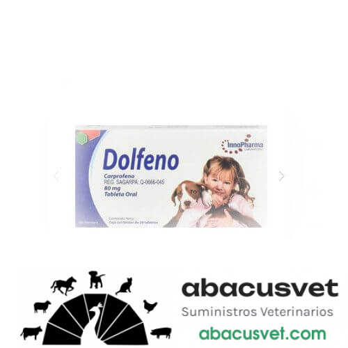 Ingrediente activo: Cada tableta contiene carprofeno 80 mg.Dosis:la dosis recomendada de carprofeno es de 2 mg/kg de peso corporal, equivalente a 1 tableta de dolfeno 80 por cada 40 kg de peso corporal, cada 12 horas. la frecuencia de administración la determinará el médico veterinario de acuerdo a la severidad del caso y a la respuesta clínica del paciente.