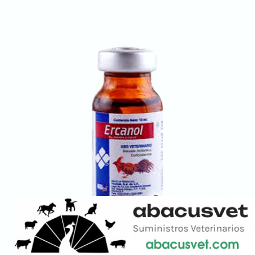 Es una efectiva mezcla de antibióticos de amplio espectro con marcado efecto antihistamínico, desinflamatorio y analgésico. Su formulación permite un tratamiento integral contra las enfermedades respiratorias además de las digestivas y urinarias en las aves. Es una solución a base de dos antibióticos de amplio espectro: Oxitetraciclina y Gentamicina adicionada con un potente antiinflamatorio glucocorticoide como es la Dexametasona. Ercanol posee propiedades antialérgicas y antiespasmódicas por