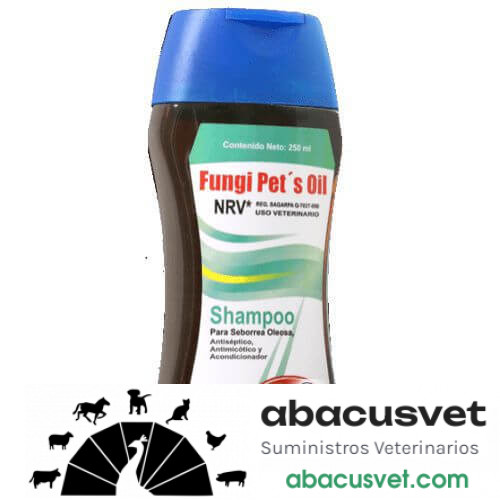 FUNGI-PETS OIL NRV envase de 250 ml marca Norvet para: FUNGI PET´S OIL NRV* es un shampoo queratolítico y fungicida, para su empleo en perros con problemas dermatológicos como seborrea oleosa y dermatofitos. También ayuda al restablecimiento de la barrera epidérmica. ¡Compra en línea – abacusvet.com!