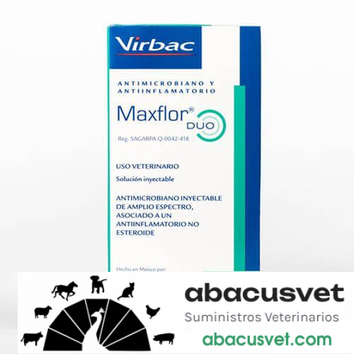 Maxflor Duo contiene florfenicol y meglumina de flunixin. El florfenicol es un antimicrobiano de amplio espectro que inhibe la sintesis de proteína a nivel del ribosoma. Meglumina de flunixin, es un antiinflamatorio no esteroidal (AINE), con efecto analgésico y antipirético que actúa por bloqueo de la enzima ciclo-oxigenasa. Está indicado para el tratamiento de las infecciones en el corral de engorda durante la recepción y la incorporación al consumo de alimento de bovinos productores de carne.