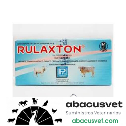 RULAXTON caja con 5 sobres de 100 gr marca Parfarm para: Tratamiento de indigestiones leves del rumen. ¡Compra en línea – abacusvet.com!