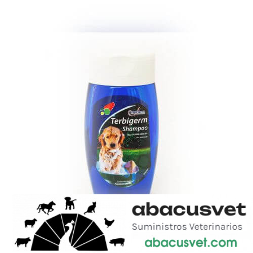 Terbigerm Shampoo frasco de 250 ml marca Innopharma para: La terbinafina es un antimicótico de amplio espectro, que actúa bloqueando la síntesis de ergosterol, un componente esencial de la membrana celular del hongo, dando como resultado la muerte del mismo.Para su uso exclusivo en perros y gatos. terbigerm shampoo® antimicótico indicado para el tratamiento y control de infecciones de la piel causadas por hongos (microsporum y thrichophyton spp). ¡Compra en línea – abacusvet.com!