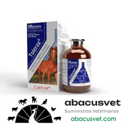 Tolerax es un potente antiinflamatorio no esteroideo, indicado en todos aquellos procesos traumáticos, quirúrgicos e infecciosos que cursan con fiebre, dolor e inflamación. FARMACOCINÉTICA: El Ácido Tolfenámico se absorbe con facilidad tras la administración intramuscular o subcutánea, experimentando una recirculación enterohepática extensiva, obteniéndose como resultado, una concentración extraordinariamente prolongada en el plasma por mucho más tiempo, alcanzando por lo menos 48 horas de efectividad. Se distribuye por todo el organismo, con una mayor concentración en el plasma, tracto digestivo, hígado, pulmón y riñón. Por el contrario, la concentración en cerebro es escasa. El Ácido Tolfenámico y sus metabolitos atraviesan la placenta en pequeña proporción, se biotransforma en diferentes metabolitos de reducida actividad, su eliminación es principalmente vía renal siguiendo la biliar y fecal. PRECAUCIONES Y RESTRICCIONES DE USO: En porcinos solo aplicar por vía intramuscular, en caso de aplicarse en animales menores de 6 meses de edad deben tomarse precauciones adicionales en su dosificación. No exceder la dosis establecida, ni la duración del tratamiento. No administrar conjuntamente o dentro de las primeras 24 horas con otras drogas antiinflamatorias no esteroideas, así como de fármacos potencialmente nefrotóxicos. No administrar en animales que cursen con enfermedades cardiacas, hepáticas y renales. No administrar en animales que presenten ulceración o hemorragia del tracto gastrointestinal o con antecedentes de discrasia hemática o hipersensibilidad al producto. No administrar en animales menores de 6 semanas; así como animales deshidratados, hipovolémicos o hipotensos. No utilizar tras la anestesia hasta que el animal esté totalmente recuperado de la misma. No administrar en equinos destinados al consumo humano.