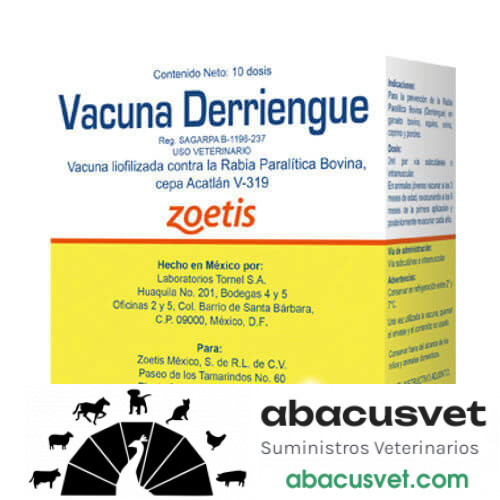 Vacuna contra el Derriengue está indicada para la inmunización activa y prevención del derriengue o rabia paralítica. Se recomienda vacunar a partir de los 4 meses de edad.Las revacunaciones se realizarán cada año o cada 6 meses en zonas con alta presencia del murciélago hematófago Desmodus rotundus.