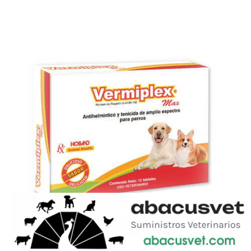VERMIPLEX Puppy Max con 6 carterass de 2 tabletas marca Holland para: Antihelmíntico, tenicida y antiprotozoario para caninos indicado en la prevención, control y tratamiento de las parasitosis mixtas causadas por nemátodos, céstodos y protozoarios. ¡Compra en línea – abacusvet.com!
